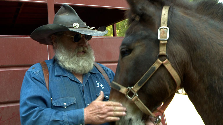 Jerry's age prevents him from being able to get on his mule.