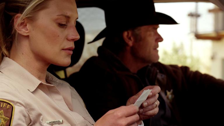 In this scene, from the episode 'Dog Soldier' Longmire and Vic are forced to come to the rescue of their missing sex offender.