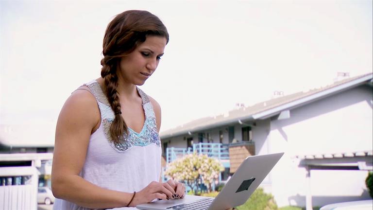 In this scene from the episode Ready, Set..Pedal, Jen is loading a bunch of arcade games and has to improvise when they don't fit in her trailer.
