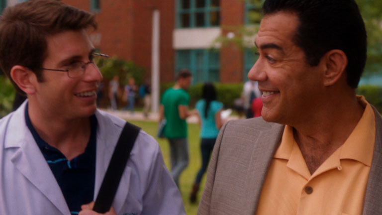 In this scene from the episode, 'Longworth's Anatomy', Carlos speaks at Daniels school and accidently discovers a murder.