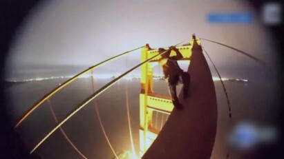 An aspiring rapper is arrested after performing on top of a billboard.