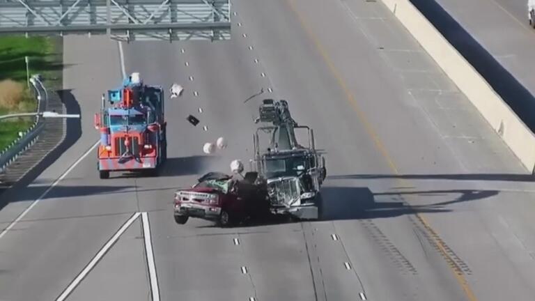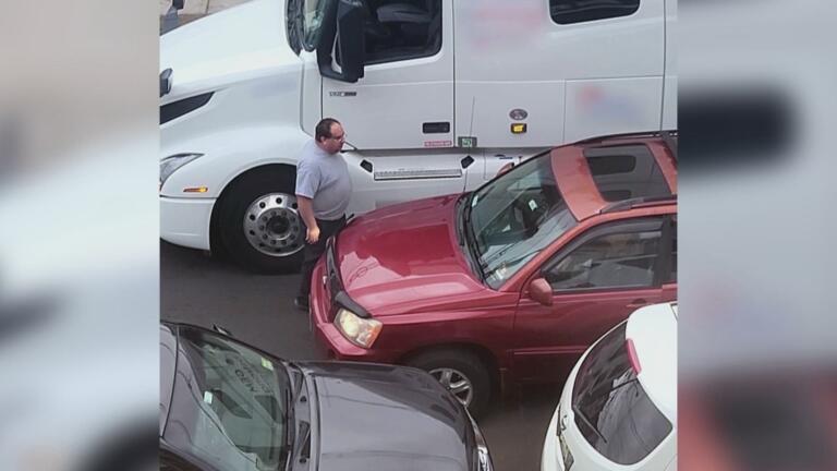 In Michigan, a truck driver repeatedly rams a car in a seemingly random attack.
