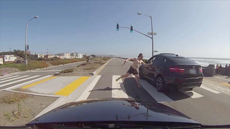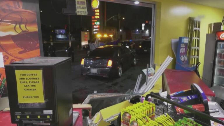 In California, an alleged carjacking goes awry, damaging several cars.