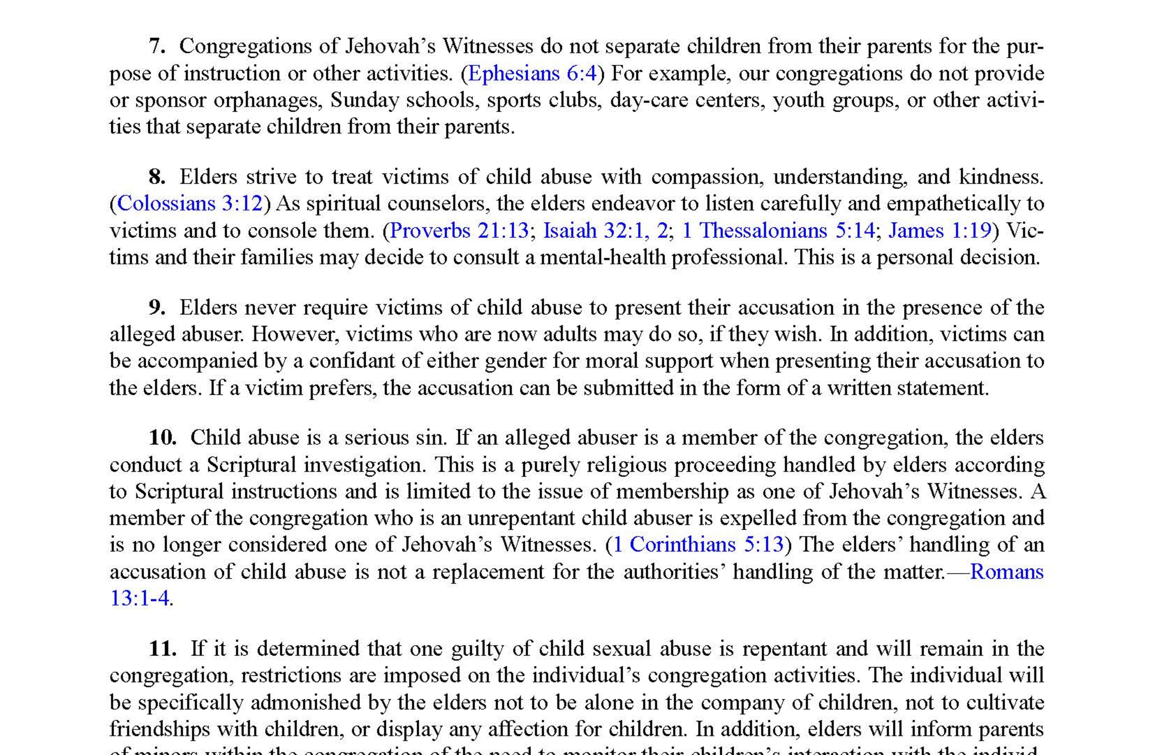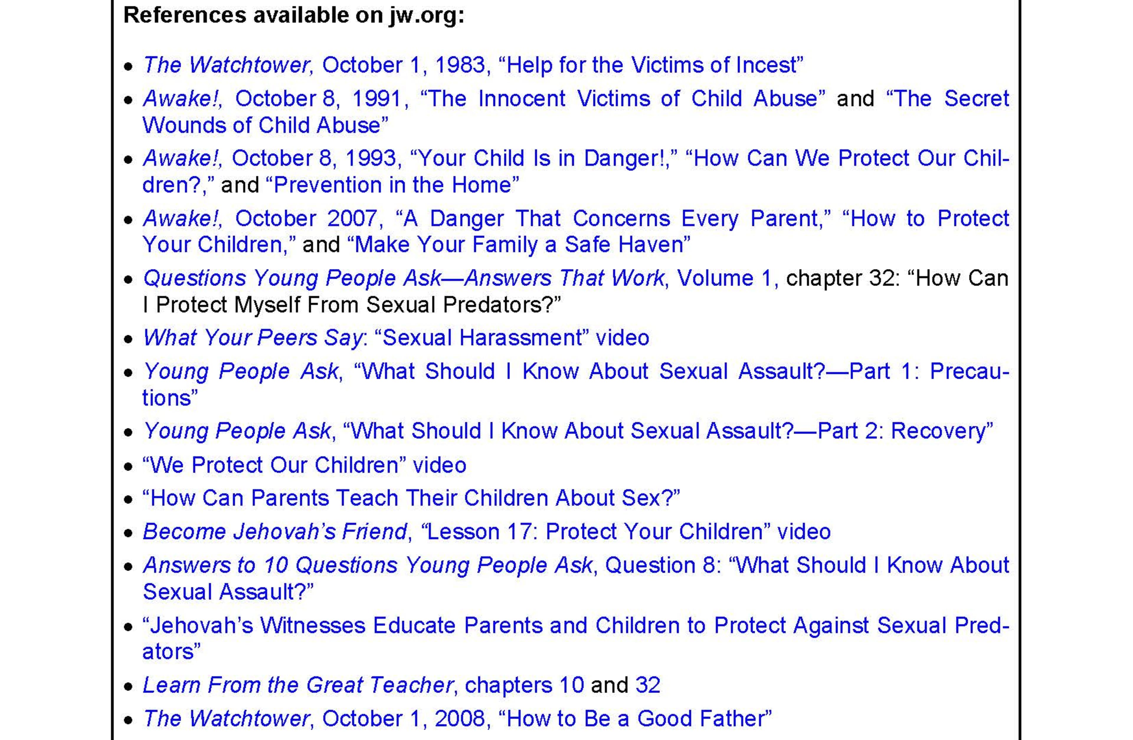 As mentioned previously, the allegations and narratives that are the focus of the program date to over 30 years ago and were addressed in the mid- to late-1980s. Courts in several countries around the world that conducted exhaustive investigations in the early 1990s with intrusive (and extremely traumatic in cases) physical, psychological and educational examinations of over 600 children concluded that the children were not victims of any kind of physical, sexual or emotional abuse or neglect, and were satisfied with the quality of their upbringing and education. (See http://www.cesnur.org/testi/TheFamily/se_thefamily.htm). It seems safe to conjecture that similar random testing of 600 children in mainstream society would not yield such results. These official investigations clearly indicate that the child protection policies the Family International implemented were effectively enforced. Regrettably, however, no policy or law can fully protect children or young persons (or adult young women for that matter, as widely evidenced by the #MeToo movement) from ever being exposed to harmful or abusive individuals. The Family International's directors have published heartfelt apologies to members/former members for any cases where hurtful or abusive behavior occurred, which includes any that may have occurred in spite of the policies in place; these apologies are a matter of public record.
