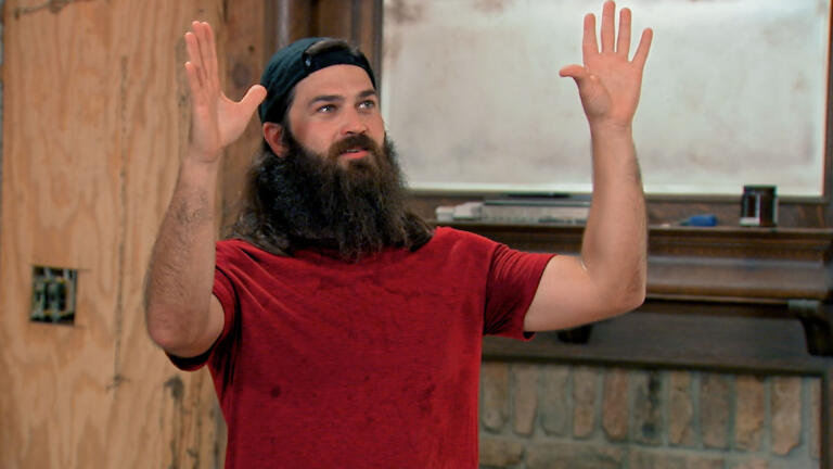 Jase and the guys turn a pontoon into a floating duck blind; Kay takes her dog to obedience class.