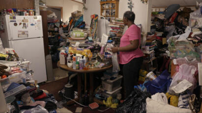 Due to a massive hoard, an entire family must eat, sleep and live in a single bedroom.