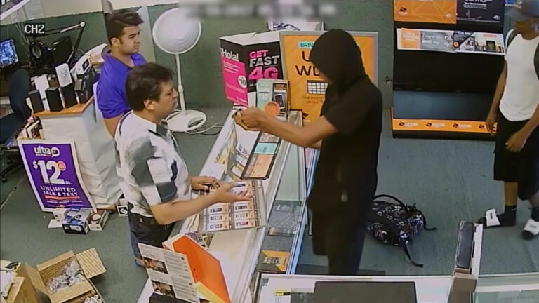 A family faces off with attackers trying to rob its jewelry store; two young women flee.