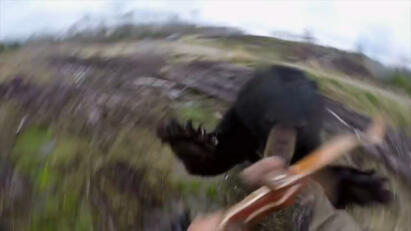 A man finds his inner beast to scare a bear away; boaters run for their lives from a volcano.