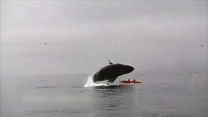 A paraglider becomes entangled with a vulture; kayakers are almost swallowed by a whale.