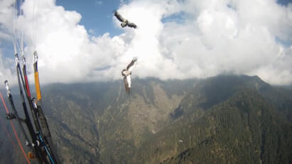 A paraglider is swept up by a freak windstorm; an avalanche buries hikers in the Himalayas.