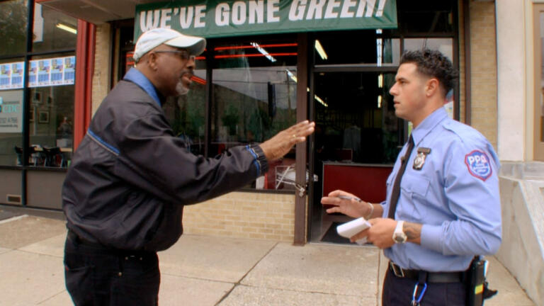 Men get tickets in front of a mosque; beauties of Philly.