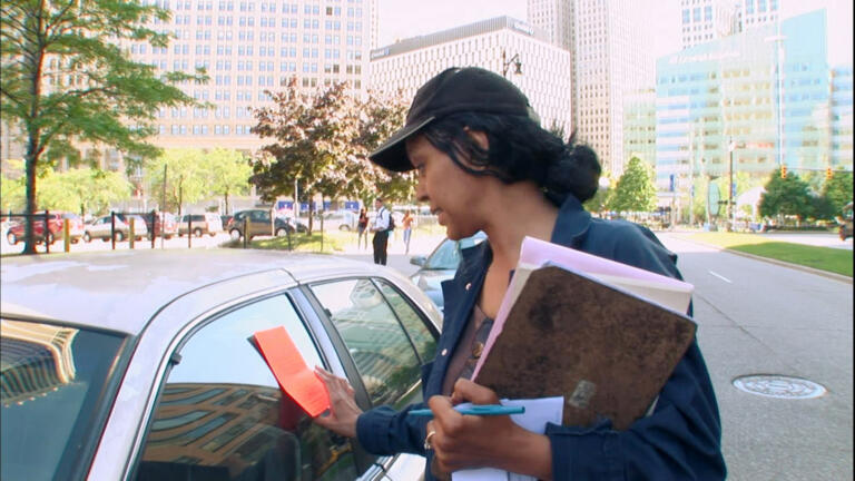 A man with a gun is upset about his booted car; an attractive ticket-writer dishes out tough love.