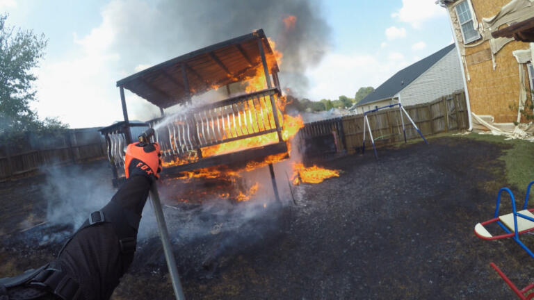 A home explodes in a Texas suburb; a citizen helps motorists trapped by a grass fire.