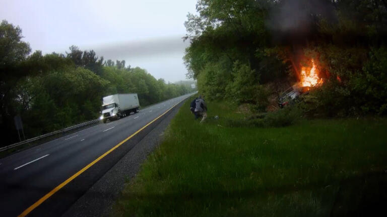Citizens work together to help at a traffic accident; campers become trapped by a deadly wildfire.