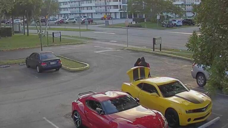 A man in San Diego strikes an SUV with a bat.
