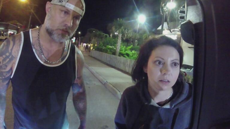 A woman in London berates a cyclist over his use of a bike lane.