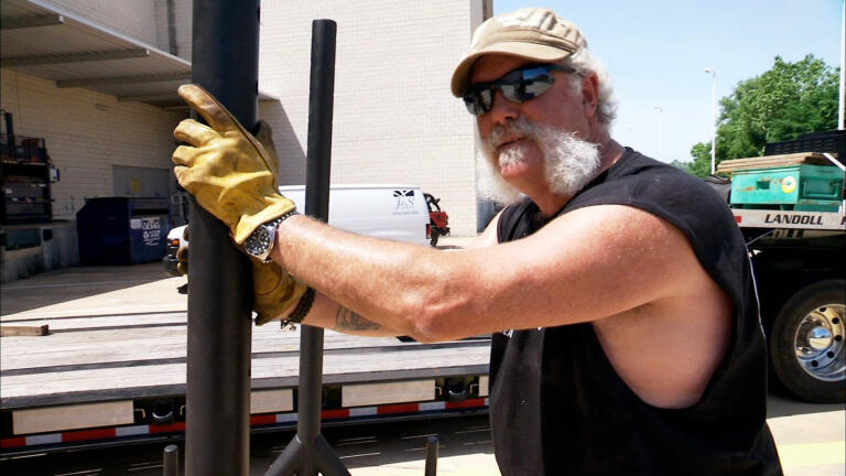 Jarrett moves a strange sculpture around the Bay Area; Jessica handles a large piece of Americana.